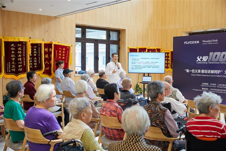 at chengyi nursing home later in the day another ceremony celebrating father's day was launched. the downtown nursing home at bldg 96, lane 251, zaoyang road, is about a five-minute walk from daduhe road subway station of metro line 13 and 15. operated by shanghai chengtou assets group co, the facility is a model of smart nursing service powered by thorough medical support including general medical practice, internal medicine and traditional chinese medicine.