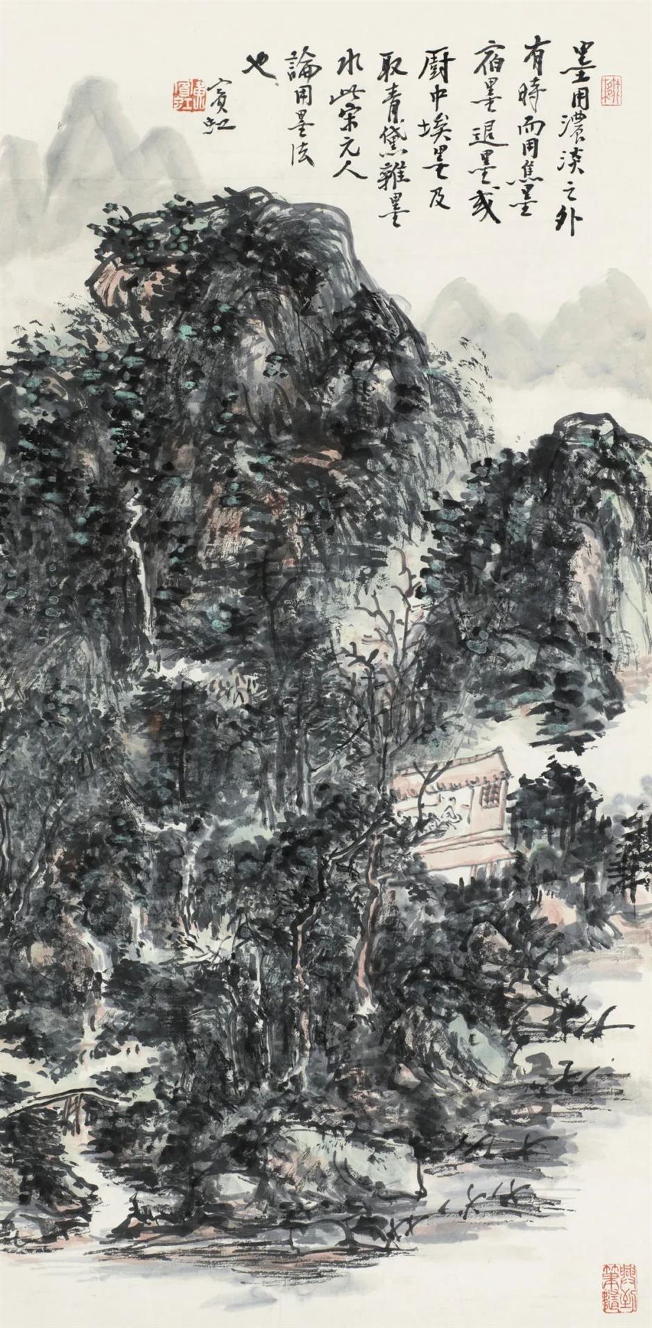 qi's "seclusion in the woods" reflects his favorite subjects, the cypress and the house. traditionally, pine and cypress trees are planted in temples and sacred places due to their evergreen nature.