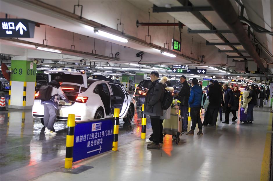 passengers wait for online-hailing cars and taxis at a bus station in shanghai.